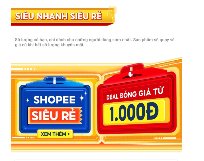 Shopee Siêu Rẻ – Deal đồng giá chỉ từ 1K, thoải mái chọn hàng chất lượng mà ví vẫn “êm”.