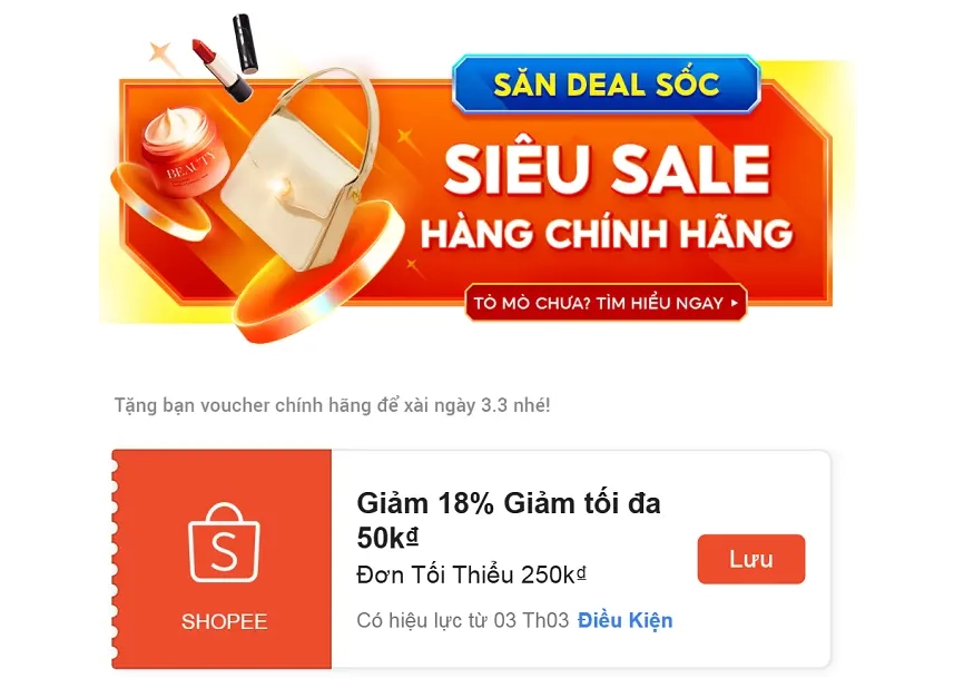 Shopee 3.3 - Siêu Sale Đầu Năm: Voucher Xtra 3 Triệu, Deal 1K Bạt Ngàn