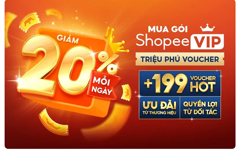 Shopee mang đến cho bạn cơ hội tiết kiệm nhiều hơn mỗi ngày với chương trình ShopeeVIP giảm 20%. Chỉ cần đăng ký gói ShopeeVIP Triệu Phú Voucher, bạn sẽ nhận ngay ưu đãi giảm đến 20% mỗi ngày cho vô vàn sản phẩm trên toàn sàn. Đây chính là tấm vé vàng giúp bạn vừa mua sắm thỏa thích, vừa tận hưởng hàng loạt khuyến mãi cực hời. Hãy nhanh tay đăng ký để không bỏ lỡ quyền lợi đặc biệt dành riêng cho thành viên ShopeeVIP!