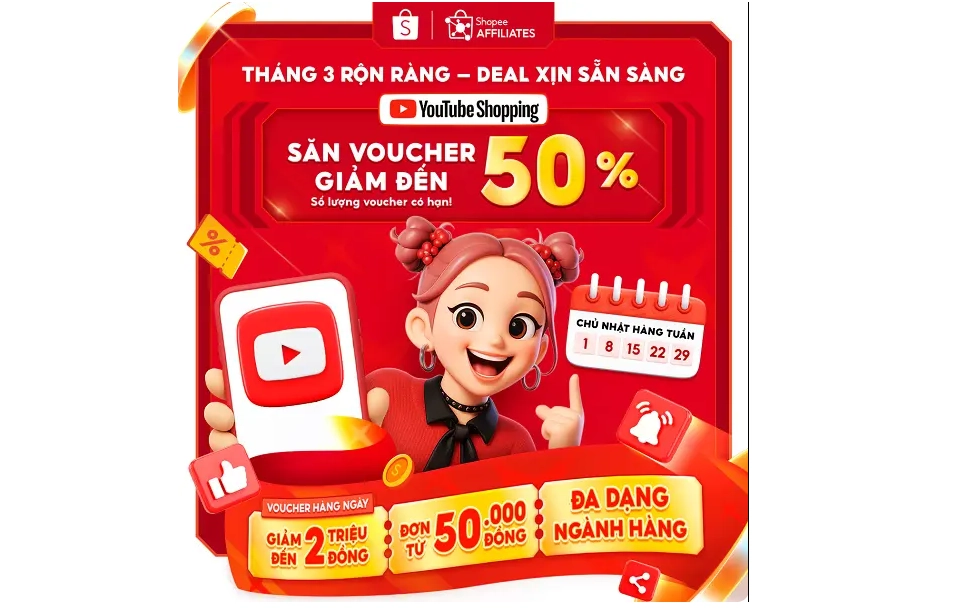 Shopee kết hợp cùng YouTube Shopping mang đến chương trình ưu đãi độc quyền dành cho người dùng: